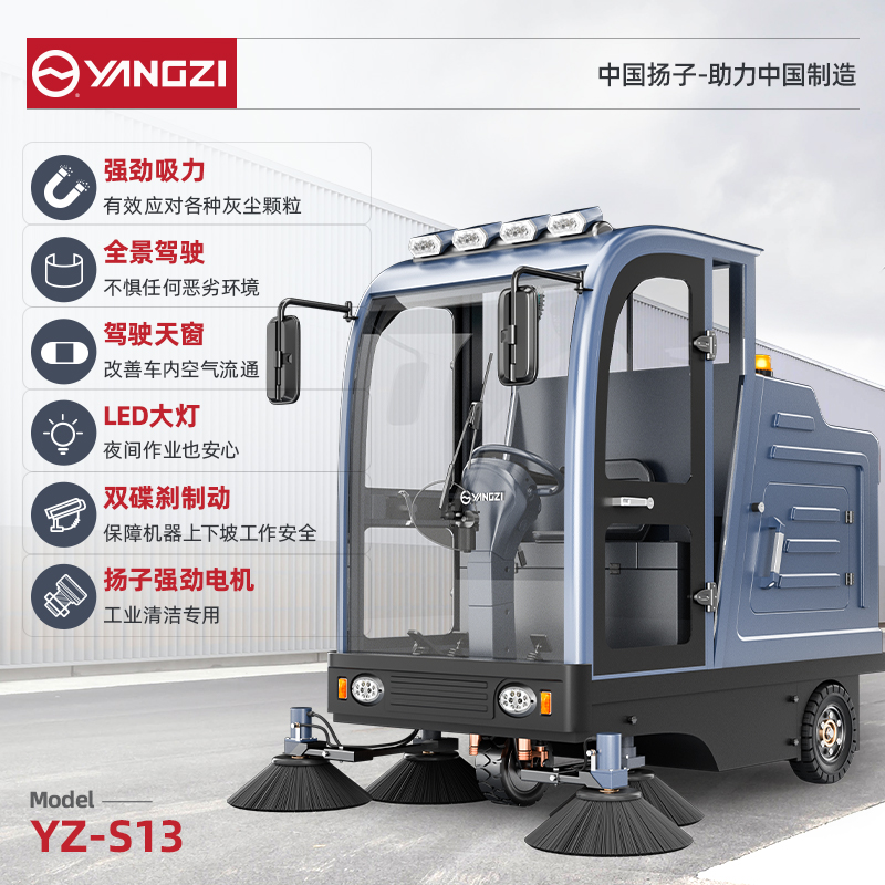揚子掃地機YZ-S13 全封閉式駕駛 工廠車間小區物業車庫廣場環衛電動清掃車
