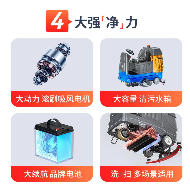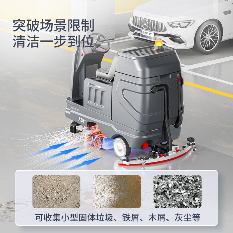 適用于廠區通道、地下車庫、商超通道等易積塵帶污漬的硬質地面一體化清潔
